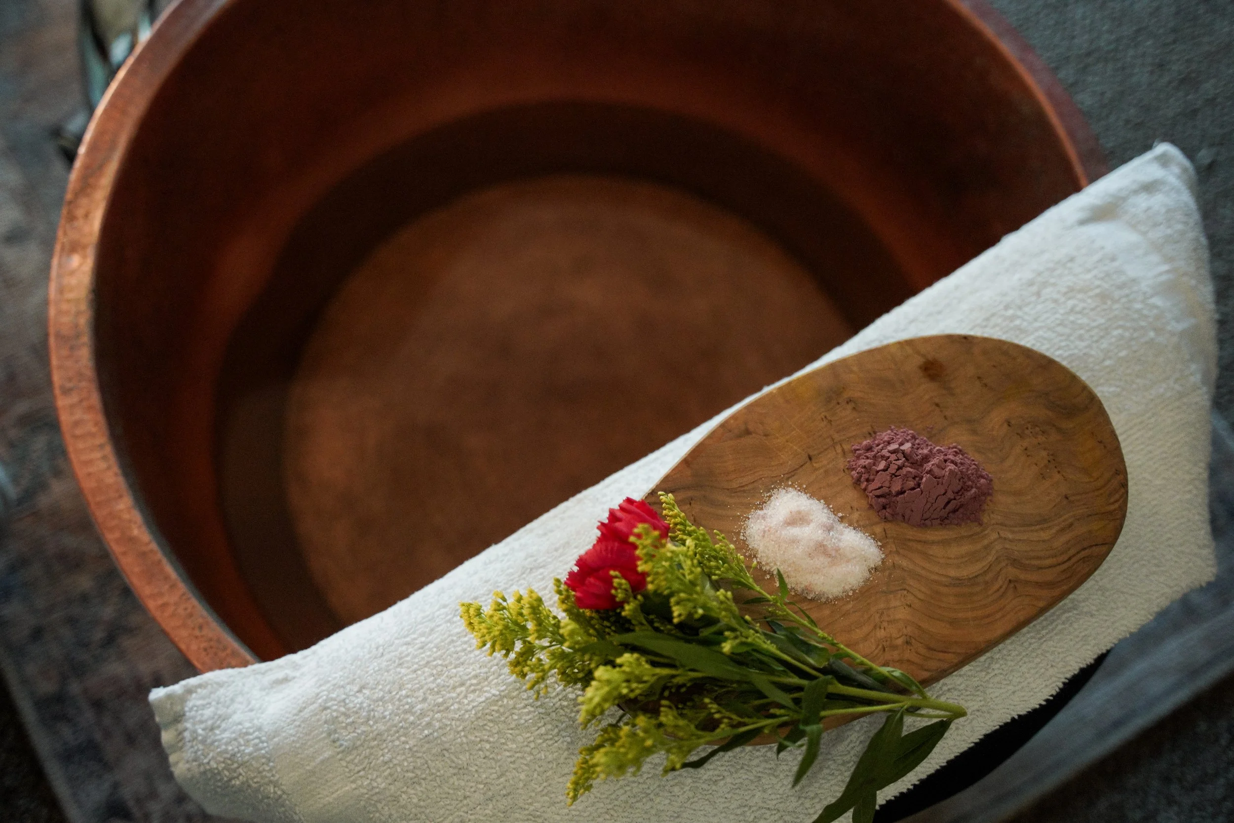 Abhyanga + Swedana is a deeply restorative Ayurvedic treatment that combines a warm, herbal oil massage with gentle herbal steam therapy. The session begins with Abhyanga—long, rhythmic strokes using warm medicated oils that nourish the tissues, calm the nervous system, and melt muscular and fascial tension. Once the body is fully anointed, Swedana envelops you in soothing herbal steam to open the pores, increase circulation, and support detoxification. Together, these therapies soften the fascia, warm the body from within, and leave you feeling grounded, clear, and profoundly relaxed.